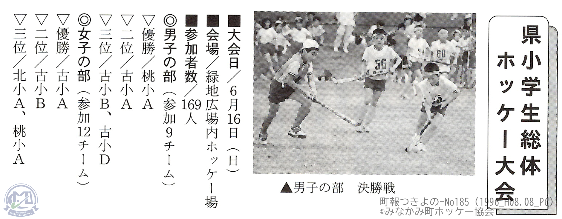 〔町報つきよの〕第21回県小学生総体ホッケー大会 X Facebook はてブ LINE Pinterest コピー 1997.08.10 町報つきよの-No197(1997_H09.08_P6) 第21回 県小学生総体ホッケー大会 ■開催日/6月14日(土)■会場/緑地広場内ホッケー場 ◎男子の部 優勝/桃小B ◎女子の部 優勝 古小A 町報つきよのN0.197 1997.8号