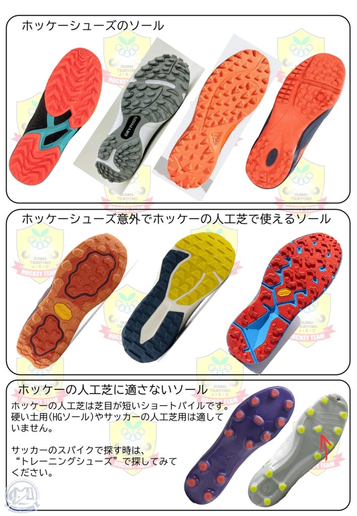 プラスティックのポイントが入ったシューズはホッケーの人工芝に適しませんのでご注意ください。