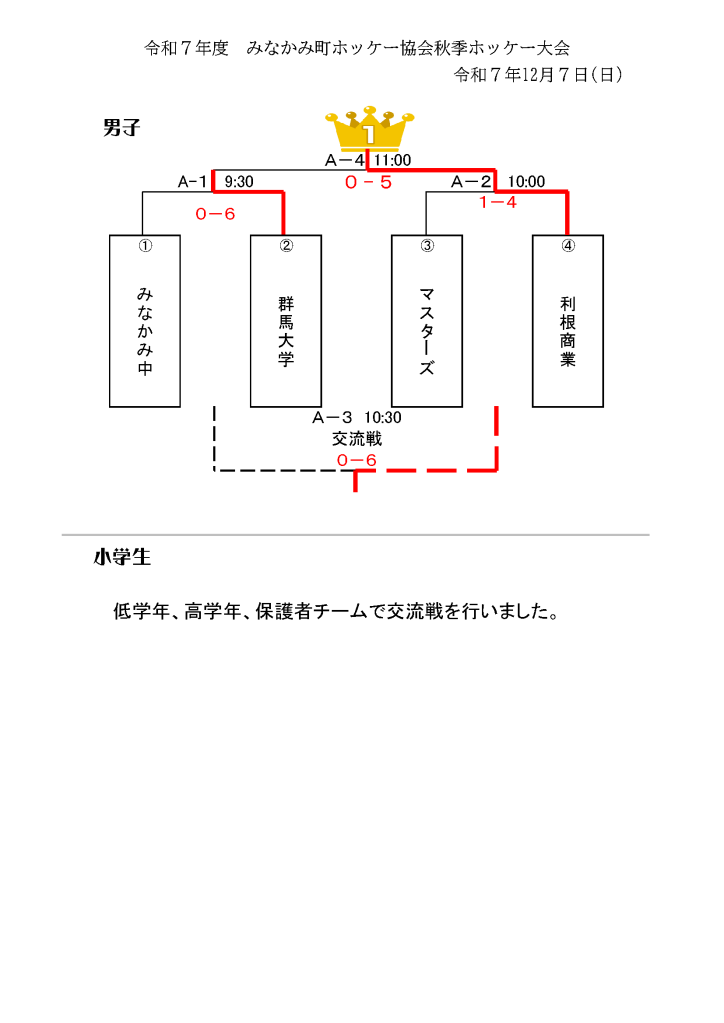2025年(令和7年)12月7日(日)に開催された「令和7年度みなかみ町ホッケー協会秋季ホッケー大会」の結果をお知らせします。